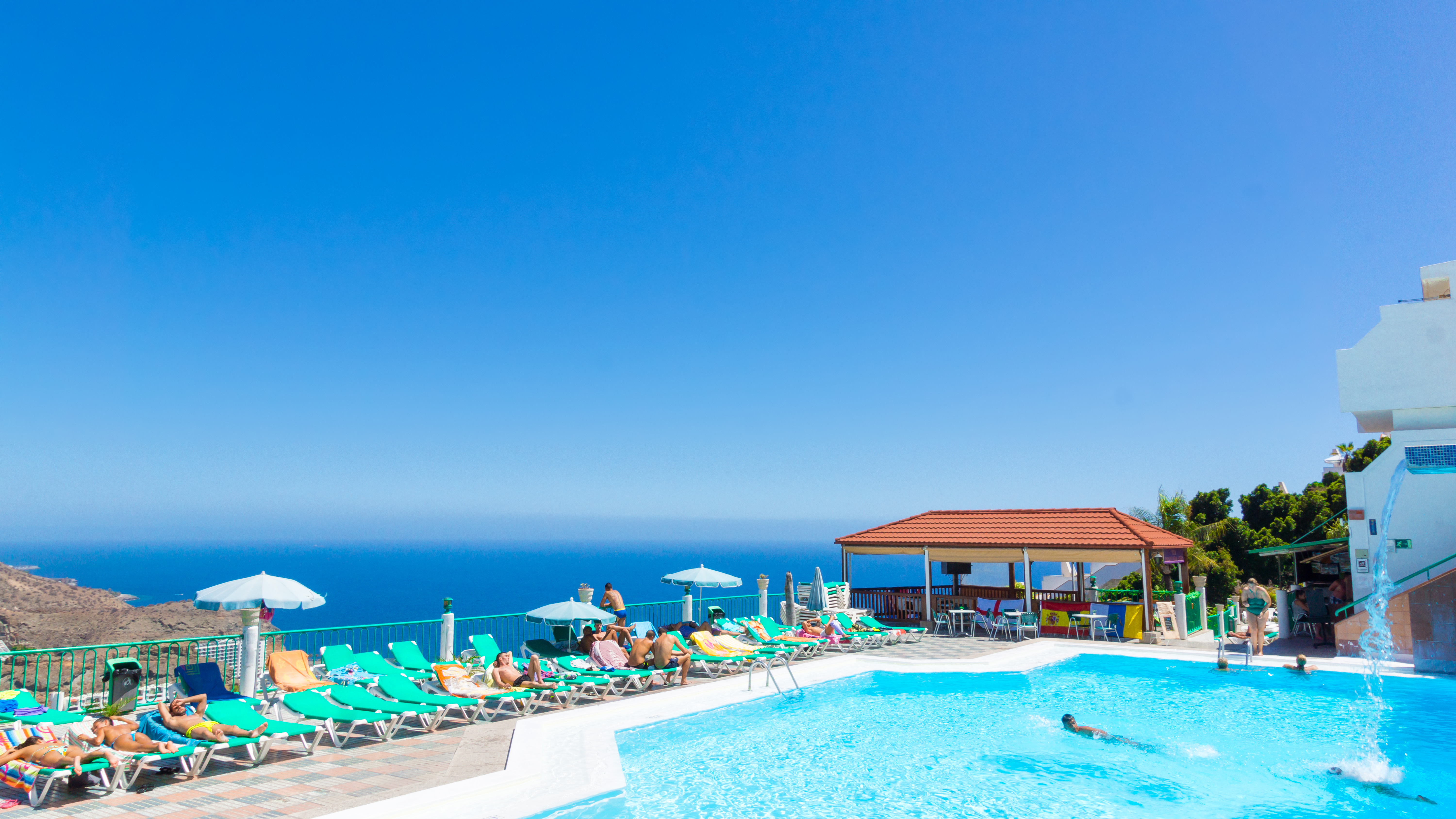 Apartments Monte paraiso are situated on the heights of Puerto Rico( Mogan Municipality) and because of the situation offers marvellous views over the ocean and Bay of Puerto Rico. The complex has been recently re-furbished. There are two swimming pools, one of which is for children, there is also a childrens playground..