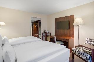 The modern hotel NH Vienna Airport is conveniently situated within the international airport Vienna-Schwechat, just across from the arrivals hall. The high speed City Airport Train CAT takes guests to the city centre within 16 minutes, where they will find famous attractions such as St. Stephen's Cathedral, Vienna State Opera, Prater or the Hundertwasser House.|The hotel offers elegantly appointed rooms decorated in warm colours and with dark hardwood floors. Business guests will appreciate free WIFI throughout the hotel and the fantastic conference facilities with state-of-the-art equipment on an area of 2,000 m2. Guests can work out or just relax in the 350 m2 wellness area with gym, sauna and steam bath. The elegant restaurant serves Austrian and international cuisine. This hotel is an ideal choice for business guests, a stop-over or everyone wishing to stay close to the airport.