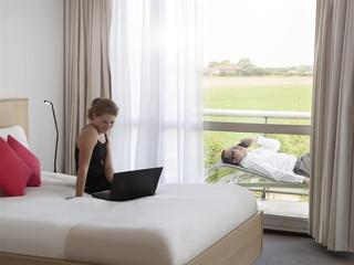 Located in the peaceful surroundings of a golf course, this hotel is equally suited for a business trip, family vacation or a romantic getaway. It is reachable by the N104, which provides access to central Paris. Each of the comfortable rooms has a private bathroom and balcony with a view to either the golf course or the peaceful surrounding area. Most are equipped with either a queen or king size bed, 46-inch flat-screen TV, WiFi access and Nespresso machine, for that aromatic coffee that is needed to start the day right. When it comes to relaxing the hotel can offer an indoor heated swimming pool and a soothing sauna. The staff will gladly arrange a round of golf on the nearby course and what better way to entertain business partners than one. The hotel is capable of hosting any business meeting or a special occasion in its three function rooms can accommodate up to 200 guests.