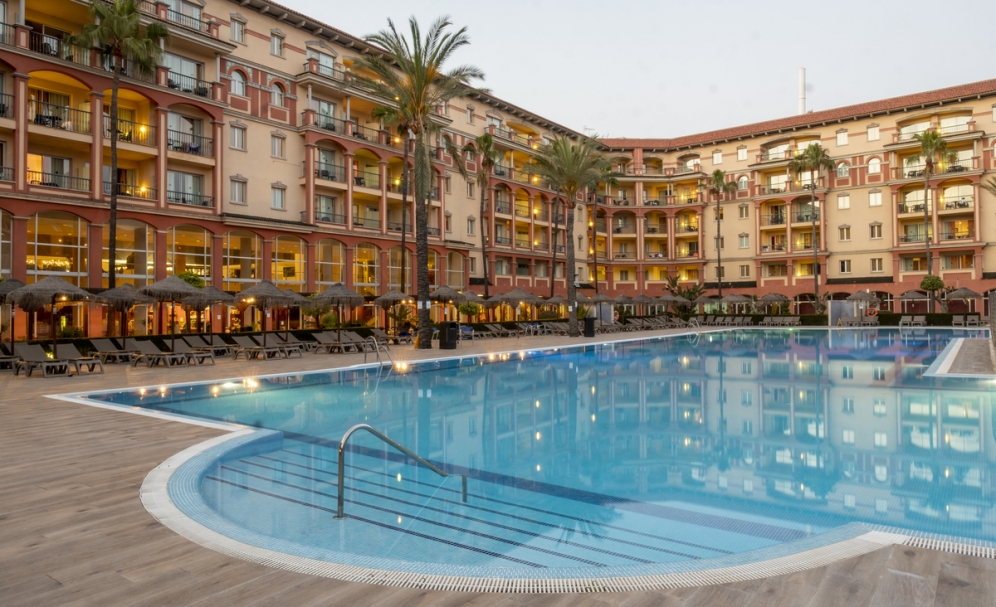 Sandy beaches several kilometres long and outstanding water quality are the trademarks of the Costa de la Luz. The modern hotel is located here in a quiet location within the town of Islantilla. The weather is ideal for sun worshippers and there are some practically deserted stretches of coast to enjoy. The endless sandy beach is only 200 m away. Alongside beach, sun, and bathing pleasure, the quiet town with small markets and some shops is 500 m from the hotel. This is an ideal location far away from the hustle and bustle to spend some relaxing time on holiday. Faro airport lies some 90 km from the hotel.||Established in 2005, this beach hotel comprises a total of 48 family rooms and 250 junior suites set over four floors. Guests are received in the foyer with 24-hour reception, a currency exchange counter, and lifts. Further facilities include a small supermarket, a hairdresser, and a range of shops for small purchases. A large meeting room with modern conference technology offers rooms for business meetings or glittering parties. The building further features a lobby bar, a cafe, and a restaurant, where excellent innovative cooking and both regional and international specialities are offered. Younger guests may let off steam in the playground, and there is parking available for those arriving by car.||The spacious and tastefully fitted junior suites all feature a balcony offering great views over the attractive complex. They also come with an en suite bathroom with hairdryer, a direct dial telephone, satellite/ cable TV, a minibar, and a hire safe. The family rooms additionally include a separate bedroom. The air conditioning and heating are centrally regulated.