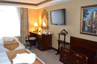 This property is 15 minutes drive from the Toronto Perason International Airport. This hotel is located very close to Highway 401, 410 and 407. 8 km from downtown Mississauga. This all-suites hotel offers an free WiFi and a flat-screen TV in every room. Suites at the Radisson Toronto Airport West include a coffee maker and microwave. The rooms also have a samll fridge and fireplace. The Radisson Toronto Airport West features an indoor pool and sauna. The hotel also has a business centre and gym. Area information is available at the tour desk. Guests at the Radisson Toronto Airport West can dine in the on-site Regent Restaurant and Lounge, which features British and Indian cuisine. The hotel also offers room service.