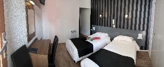 Only a few minutes from the Sanctuaries tourist centre and shopping facilities. ||The family-friendly hotel offers free wifi, an air-conditionned restaurant and bar, a sun terrace, lift access in a convivial environment. Further facilities available to guests a lobby with hotel safe, and a laundry service (fees apply).||Each room features an en suite bathroom with a shower, WC and hairdryer, a balcony, a flat screen TV, direct dial telephone and individually regulated heating.|A continental breakfast buffet is served each morning.||Lourdes lake and golf course is around 3 km from the hotel.
