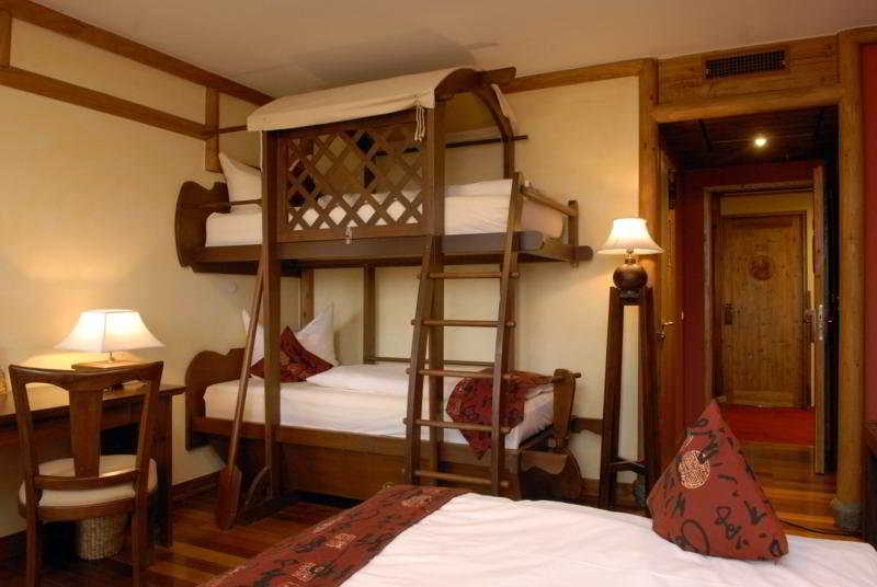 The hotel is located within the famous Phantasialand in Brühl, just 20 km away from Cologne.||The hotel is the largest pagoda complex outside China, it is as authentic on the inside as it is on the outside, with everything down to the smallest detail based on an original Chinese design. Designed in accordance with feng shui; the eastern philosophy that brings harmony to the elements; the hotel and its welcoming garden are places of calm and tranquillity.||The rooms are equipped with a double bed. Each family room has an additional bunk bed designed like a junk. Each room has a shower, toilet, hairdryer, satellite TV and a telephone. The rooms combine Chinese ambience with European living comfort.||In the authentic surroundings of the hotel's private spa, a range of treatments from China, Thailand and Bali are waiting to be discovered. Expert therapists use herbal essences and massages to revive the energies that flow through the body and to relax the mind. It offers a wide variety of oriental treatments and facials that use original care products from Asia.||Restaurant Bamboo offers brunches and buffets of the Euro-Asian cuisine, family-friendly atmosphere, original Chinese style and furniture: perfect setting for a pleasurable evening, children's buffet daily. Restaurant Lu Chi offers gourmet/ a-la-carte restaurant, cosy, warm colours and heavy furniture, exquisite á la carte restaurant and singing waitresses.