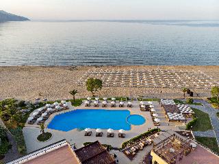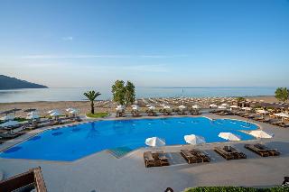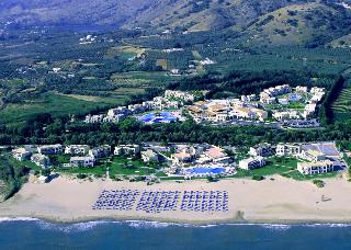 Pilot Beach Resort is located on the northwest shoreline of Crete, Greece, in the bay of Almyros neighboring the picturesque fishing village of Georgioupolis, halfway between Chania and Rethymno amongst a scenery of unparalleled beauty, and near settlements that retain the traditional Cretan elements but also villages with a cosmopolitan atmosphere. It offers a unique combination of tradition, hospitality and luxury with the comforts of a state of the art hotel. Pilot Beach Resort with its spacious stylish public areas and unique Cretan architecture is surrounded by olive and avocado trees and is directly on the sandy beach of Georgioupolis offering spectacular views of the Aegean Sea and of the famous White Mountains. Whilst it is considered among the finest five star hotels in Crete and offers services of the highest standards combined with the well known authentic Cretan Hospitality. |The architectural style of the resort emanates the atmosphere of a Cretan village. The resort offers 450 bungalows and suites of various types.|The resort's private sandy beach on the shores of the beautiful Aegean Sea, covers 400 meters and represents only a small stretch of the famed, 7 km long Georgioupolis Beach which is also awarded with the Blue Flag for maintaining the high standards of the international Blue Flag Organization regarding safety, quality of waters and the general infrastructure of the beach.|Pilot Beach Resort offers the ideal setting for a family vacation, with family accommodation and facilities, activities and supervised children activities. The beach is ideal for family holidays, where every family member can enjoy organized beach games and the shallow water at the shore is a children's paradise.