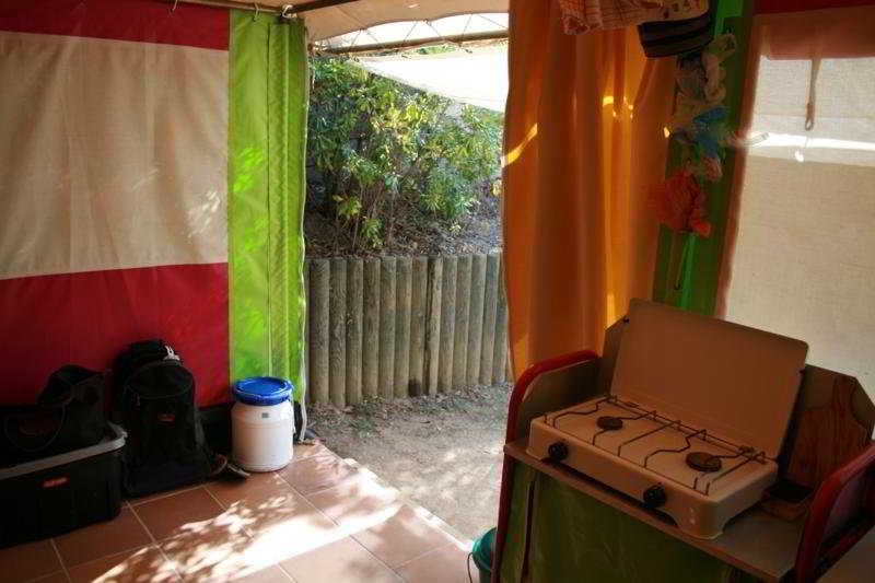 This campsite is located in the tranquil, green setting of pretty Cala Pola bay. Guests will find the beach just 20 m away and it is 100 m to the nearest links to the public transport network. The campsite lies 4.5 km from Tossa de Mar, 40 minutes from Girona Airport and 2 hours from Barcelona Airport.||This beach campsite is situated in 20 hectares of grounds and features 80 'Bengali' fixed tents each with a living space of 16 m² and furnished for a maximum of 5 persons. The site offers 5 sanitation buildings (toilets, showers, etc.), which are located close to each group of tents. Further facilities on offer to guests include a safe, a currency exchange facility, a TV lounge and a games room with gaming machines. Younger guests can let off steam in the children's playground or the kids' club. There is a supermarket which is open daily, a cafe, a bar, a pub, 2 restaurants, an Internet corner and WLAN Internet access as well as a regular bus service to Tossa (extra charge). Moreover, covered garage parking is available for those arriving by car.||The Bengalis come with 2 individual bedrooms, one of which offers bunk beds. They are equipped with a kitchen corner with a cooker and a fridge, kitchenware, cutlery, tea and coffee making facilities and a power supply. All units also offer a terrace.||This campsite features an outdoor swimming pool and children's swimming area and guests can relax in the pool area with its poolside snack bar, sun loungers and parasols (charges apply). The more active guests can take part in the aqua fit or aerobics sessions and try diving, motor boating or banana boating. There are 2 tennis courts and it is also possible to enjoy a game of table tennis, pool/snooker, beach volleyball/volleyball or bocce. Guests can also explore the surrounding area on bicycle, while in July and August the campsite also offers a daily entertainment programme for adults and there are activities available for children.