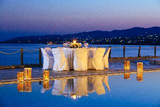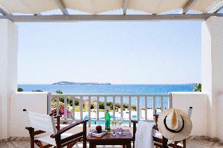 A beautiful complex of 52 rooms and suites, “Poseidon of Paros Hotel & Spa” promise their guests the magic of absolute serenity, perfect harmony and Greek hospitality. Located on the unique Golden beach (Chrissi Akti), 10 km from the airport and 25 km from the port of Paroikia.|Architecture:|Traditional Cycladic Architecture with contemporary decoration and modern facilities.|Hotel's Profile:|Two outdoor swimming pools, two children's pools, two pool side cocktail bars, a la carte restaurant, children's playground, fitness room & spa centre, conference centre, tennis court, helipad, floating platform, internet corner with free wireless internet access, private parking.|Sea View Restaurant: As the sun sets the sea view restaurant Triton offers delicious dishes in a romantic candlelit atmosphere, where couples can relish an intimate dinner under the starry sky. Guests can start their day with a sumptuous breakfast buffet at the sea view restaurant and continue with afternoon cocktails at the pool bar while admiring the magnificent view of the shimmering Aegean Sea.|Room facilities:|Air-conditioning, satellite TV, mini fridge, kitchenette in some rooms, bath or shower, luxury bath amenities, safe deposit box, anatomical mattresses & pillows (coco-mat), hairdryer, LCD flat screen T.V., magnifying mirror in bathroom, direct dial phone, complimentary Wi-Fi, music channel, private balcony or veranda.|Guests services:|24 hours Front Desk, shuttle service, travel desk, bellboy service, daily maid service, laundry service, room service, wake up service, complimentary pool & beach towels, massage and other treatments. Additional services such as baby-sitting, coiffure, medical service, flowers, car rental, newspapers, etc. are also available on request. |Nearby activities:|Water sports (wind surfing, kite surfing, scuba diving), sailing, horse riding.