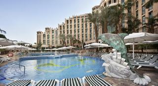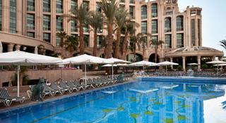 Welcome to the Queen of Sheba Eilat Hotel. Located in the heart of Eilat, with stunning Red Sea views, this Eilat, Israel hotel boasts a seafront pool, spa and adjoining shopping mall. The hotel is just five minutes from Eilat Airport and a two-minute walk from the North Beach, on the promenade. Discuss business in the Executive Lounge or unwind in one of the restaurants and bars.Visit the Makeda restaurant for flavorsome Israeli breakfasts and gourmet international dinner buffets. Savor poolside burgers and snacks at Ebony - Pool Restaurant & Bar, or enjoy delicious cuisine at Chicago Grill bar. Unwind with an evening drink in the Queen of Sheba Eilat Hotel. Enjoy live music in the Axum Lobby Bar or sip cocktails and enjoy breathtaking Red Sea views by the outdoor pool.This Eilat hotel has wireless internet access in nine meeting rooms and in public areas. Host a conference or special occasion for up to 700 people in the flexible meeting space, including the extensive eighth floor balcony and poolside area.Try water sports at the beach, rejuvenate in the gym, relax in the sauna or enjoy a massage in the spa. After an exciting day discovering nearby attractions such as the Dolphin Reef, Underwater Observatory and IMAX, retire to a stylish and sophisticated guest room. Enjoy sea, lagoon or mountain views, or upgrade to an Executive Room or King Alcove Mountain View room for additional space and full Executive Lounge services.