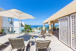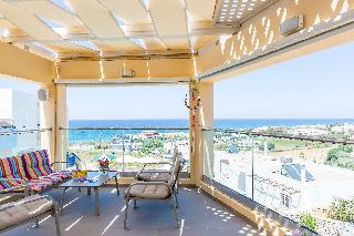 This charming, family-friendly aparthotel is set high on a hilltop in a quiet area just outside of the seaside town of Rethymnon, lending it picturesque views of the deep, blue sea. The town centre is only ten kilometres from the hotel, and the nearby sandy beach, the Golden beach, is only a five-minute walk away. Guests will also find a bus station, supermarket, and several local taverns close by.||The complex consists of of 17 independent apartments, each with 30 to 40 square metres, providing plenty of room for families to spread out and relax. Apartments come with kitchenettes where guests can prepare and enjoy snacks and light meals, in addition to standard private bathrooms and bedrooms. Guests can spend sunny afternoons lounging by the sparkling outdoor pool or the roof-garden whilst sipping a drink from the bar, or enjoy a game of billiards in the lobby.|Because of its location it's an ideal base for exploring Crete.|Easily and fast you can get from the western end of Crete, Falaserna, Balos and Elafonisi to the eastern most end Agios Nikolaos and Vai.|It ‘s just 10 km away from the Monastery of Arkadi ,the archaeological site of Ancient Eleftherna, and its archaeological museum, 70 km from the Knossos Palace and just 30minutes far away from the amazing beaches of southern Crete. (Palm beach, Triopetra , Plakias etc )|Visits to the Town of Rethymnon and excursions to destinations throughout the island are easy with both by car and the public transport, which is very convenient for the region.