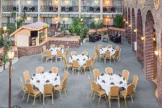 The hotel is located on the shores of the beautiful Saint John River with easy access to the centre of Fredericton and area attractions throughout this area of New Brunswick. The hotel is on the motorway 105, north of Princess Margaret Bridge.||This business-class hotel was built around Atlantic Canada's only interior courtyard. It is only minutes from central Fredericton destinations. It is in a rural area, with great accommodation. Renovated in 2009, the hotel comprises 114 guest rooms, a lobby with 24-hour reception and check-out service, currency exchange facilities, a games room, a café, a bar, a breakfast/dining room and conference facilities. Internet access and room and laundry services are also provided.||The hotel offers charming guest rooms, with beautiful views. The en suite bathrooms are fitted with a shower, bath and hairdryer. Standard in-room amenities include double or king-size beds, a direct dial telephone, satellite/cable TV, a radio, Internet access, a fridge, microwave and tea and coffee making facilities. Furthermore, each room comes with a washing machine, ironing set, individually regulated air conditioning and heating and a balcony or terrace.||The hotel features an on-site golf driving range, miniature golf, a 9-hole executive golf course and beach volleyball (all for a fee). There is also an indoor heated swimming pool, a gym, hot tub and basketball facilities. Guests may go bowling or biking for additional fees. Snowmobiling, skiing, cross country skiing and toboggan riding at Mactaquac are further options.||The hotel features a restaurant. The property provides room service during limited hours. Breakfast is served each morning, whilst set menus and à la carte options are available at lunch and dinner.||Take the motorway 105 north off Princess Margaret Bridge.