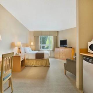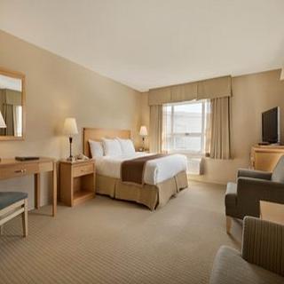 Offering a fitness centre, Ramada Nanaimo is located only 6 minutes' walk from Nanaimo's Harbourfront walkway. A complimentary breakfast is included each morning. Free WiFi access is available.||A flat-screen cable TV is provided in each room at this Ramada hotel. A seating area and a work desk are also available. A private bathroom includes a shower, bath, and towels. Select rooms offer a balcony.||The front desk is available 24 hours a day and offers baggage storage. Vending machines provide guests snacks and drinks. A business centre and meeting facilities are available on site. Laundry and dry cleaning offer convenience.||Departure Bay Ferry Terminal is a 6 minute drive from Ramada Nanaimo. Vancouver Island Conference Centre is 2 km and Cottonwood Golf Course is 17 km away.
