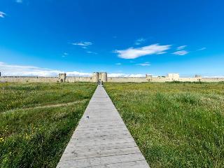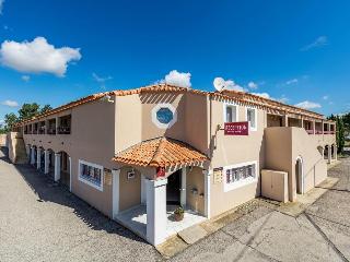 This hotel is located 1 km from Aigues-Mortes, a town that bore witness to the great adventure of the Crusades during the Middle Ages. The town is equally a central point of departure for numerous excursions into the Camargue region. Nimes, the French Rome, and St Remy de Provence bathed in the light of the Alpilles foothills are also part of the golden triangle to explore between the River Rhone and the Mediterranean.||The hotel has 44 rooms and is air-conditioned and has a reception area, hotel safe, restaurant, bar and its own car park.||The hotel welcomes guests into its simple and elegant rooms. The majority of its rooms have a terrace or balcony looking onto its green spaces and the swimming pool. Rooms are equipped with en suite bathroom, direct dial telephone, TV, radio, central heating and a terrace.||The hotel has a swimming pool in its grounds. Horse riders and hikers will enjoy the trails towards Saintes Maries de la Mer or further inland into the wild and untouched landscapes.||Guests stay at the hotel on a bed and breakfast, half board or full board basis. Guests can choose to take a buffet breakfast, while lunch and dinner can be taken as set menus or ordered à la carte.||Nîmes-Arles-Camargue Airport is 40 km away while Montpellier-Méditerranée Airport is 25 km away. The high speed train (TGV) station in Montpellier is 30 km away. The Autoroute A9 is 30 km away from the hotel.