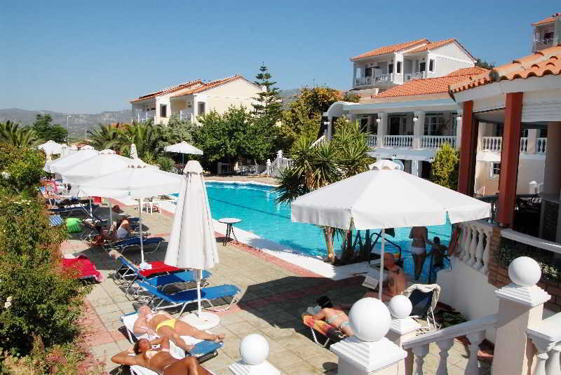 The hotel is situated near the traditional village of Pythagorio, about 10 km away from the capital of the island. The sea is within 800 m of the hotel. Amongst the colourful narrow paths of Pythagorio there are unique Neoclassical buildings, the ruins of ancient Samos, the square with the town hall, and the town's archaeological collection. There is a bus station roughly 50 m away and Samos International Airport is 1.2 km from the hotel.||The hotel's architecture follows a Neoclassical style, accompanied by a lush green environment with blooming gardens. The hotel has 68 guest rooms on offer and facilities include a lobby, hotel safe, TV lounge and breakfast room. The swimming pool is the biggest saltwater pool in Samos (280 m²). Guests usually spend most of their time there, entertaining themselves with swimming, sunbathing or drinking one of the delicious cocktails from the pool bar. There is a playground for children, washing machines, and free parking in front of the hotel also available to guests.||The hotel rooms feature an en suite bathroom with shower/bath and amenities include a telephone, music, a minibar and air conditioning. From the balconies one can enjoy the panoramic view over the sea.||The hotel's 280 m² seawater swimming pool is the biggest on Samos Island. It has a children's swimming area and a poolside snack bar. Guests can relax on sun loungers under parasols on the sun terrace. A sauna, gym, table tennis and hot tub are available free of charge and guests can also play a game of pool/snooker (fees apply). All kinds of different watersports are available for a fee on nearby Bocca Beach, as too are sun loungers and parasols (hire fees apply).||The restaurant at the hotel serves a rich variety of Greek and international dishes.||From the airport turn right in the direction of the village of Pythagorio. At the traffic lights turn left and after 50 m (before the supermarket) turn right to reach the hotel.