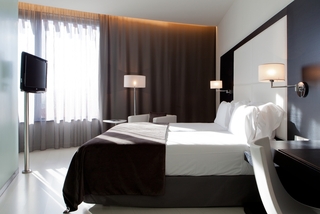 The contemporary hotel is situated in L' Hospitalet, one of Barcelona's busiest business development areas. Located right across from Barcelona's international trade fair, this attractive property also offers easy access to the city centre and El Prat International Airport. The unique design of the hotel is a creation of the famous Japanese architect Toyo Hito, and is set to become an integral part of the Barcelona skyline. This imposing hotel offers exquisite service and is ideal for all kinds of visitors including individual business travellers, holidaymakers on city breaks and congress delegates. The soundproofed and carefully appointed rooms guarantee homely atmosphere and good night's sleep. Guests may dine on a selection of international cuisine at the charming in-house restaurant, have a drink from the welcoming bar and work out at the on-site gym. There are impressive meeting facilities and in case of any doubt or query travellers may turn to professional 24-hour reception. The hotel is located just a few minutes walking from the metro station Europa- Fira (L9 , orange line) , which connects directly with the airport and the city center. If you come by car , the distance to the airport is only 10 minutes. And if you want to go for shopping, the Gran Via 2 Shopping Centre is only 150 meters away from the hotel.