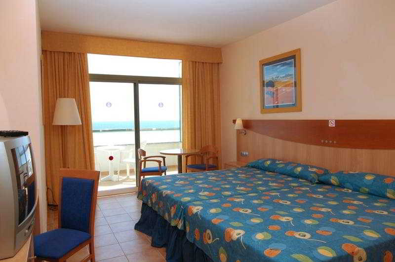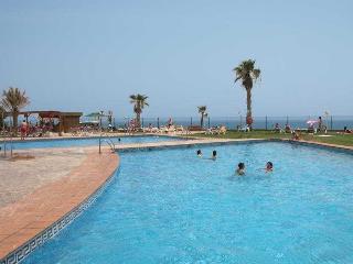This attractive hotel has an unbeatable seafront location situated in the resort of Mojacar, across the road from the nearest sandy beach and just 50m from the Marina Golf course. Approximately 1.5 km away lies the village of Garrucha which offers numerous shopping options and typical fish restaurants. A bus service runs to the village of Mojacar, perched on a hilltop.||Built in 2002, this bright and modern hotel has 334 double rooms on 4 floors with a full range of facilities to offer its guests. 24 h reception service with currency exchange. Large sun terrace and gardens with 2 large pools for adults children (one of which converts to an indoor pool in winter,). Enjoy a drink in the cafe-bar or at the Irish pub. Other facilities with a supplement include car park and garage, hairdressing salon in the sister hotel nearby, newspaper kiosk and gift shop. The hotel is airconditioned throughout. The restaurant has a full buffet service and there is an A la carte Italian restaurant (check with hotel for dates that it is open) Highchairs are available upon request.For the younger members for added entertainment there is an amusement arcade and mini club in high season. For meetings and events hotel has conference rooms and lounges. Internet access is available in reception (supp).||The spacious and comfortably furnished en suite rooms are fully equipped with a hairdryer, a direct dial telephone, satellite/ cable TV, piped music and electronic safety locks. There is a mini bar, safe deposit box, heating and air conditioning and balcony or terrace. Each room has two queen size 135 cm beds sleeping up to 4 people. No extra beds are possible. There are a few rooms specially adapted for disabled with a maximum capacity for 2 people and are on request.