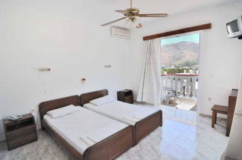 The beautiful island of Tilos has many things to offer and most of them are close to this apartment complex in the bay of Livadia. The local town centre is just 300 metres away and the beach is only 500 metres from the complex. The Cave of Elephants is 8 km away and the island is connected with Rhodes, Kos, Patmos and Leros. The island features buses that can take guests to the various villages and beaches and the nearest airport is Rhodes Island International Airport.||This is a 3-storey apartment complex comprising 12 two-room apartments. Guests are welcomed into a lobby and will find a 24-hour reception service, a hotel safe and a restaurant on site. Those staying at this charming establishment can enjoy the flower collection and of course the hotel's hospitality.||The studios are spacious, clean and have breathtaking panoramic views of Livadia. The apartments have a bathroom with shower and hairdryer, and are equipped with individually regulated air conditioning, a ceiling fan, satellite/cable TV, Internet access, a boiler, a safety deposit box, a toaster and a balcony or terrace.||Guests can enjoy breakfast with a view at the hotel.||Tilos is connected with Piraeus by ferry.