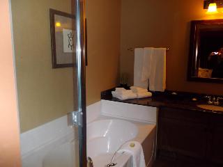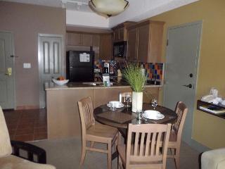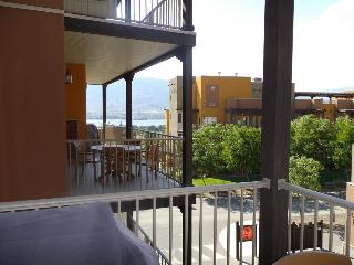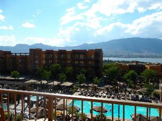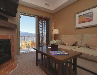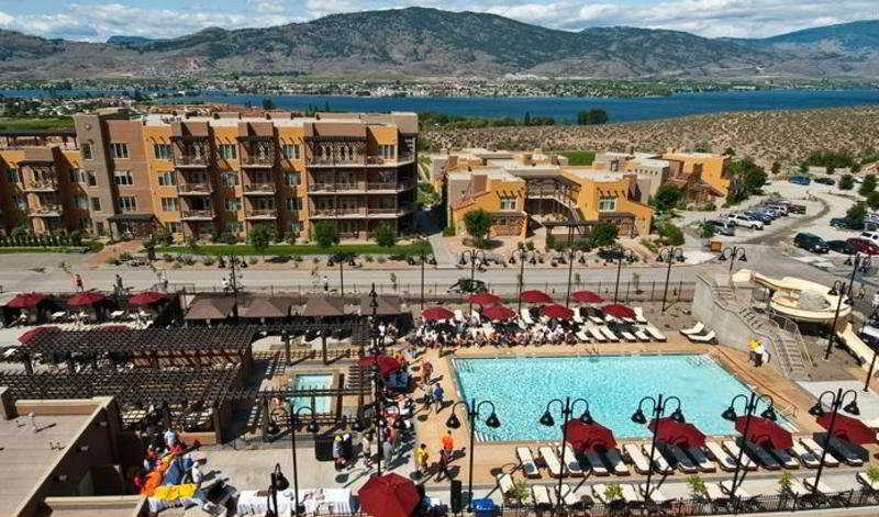 A true oasis, the hotel places guests in the heart of south Okanagan's rich cultural landscape and Okanagan wine county in Osoyoos, British Columbia, an area known as 'Napa of the North'. Surrounded by dramatic sun-drenched landscapes, kilometres of vineyards and views to Lake Osoyoos' warm, blue waters, this holiday residence is within reach of desert golf, luxurious spa experiences and unique cultural opportunities at the cultural centre. Just 2 hours south of Kelowna International Airport and 4 hours east of Vancouver International Airport, visitors to Osoyoos will enjoy a laid back resort town atmosphere that offers year round activity, world renowned vineyards, fine dining, unique cafés and boutique shops.||This resort and spa brings all the treasures of the Osoyoos BC area together in a one-of-a-kind lodging experience, infused and immersed with wine, golf, possibility and culture. Guests can experience the luxury and service of a resort with the independence of their own Okanagan holiday condo accommodation. Internet access is provided. Guests can dine in the hotel restaurant or take advantage of the room service.||The hotel offers a combination of 1 and 2-bedroom luxury condos with matching full en suite bathrooms, as well as full gourmet kitchens, dining rooms, living rooms with a pull-out queen sofa and fireplace. Further standard amenities include a telephone, voicemail, complimentary high-speed Internet access, flat panel TV with DVD player, air conditioning and private balconies. The bathrooms are fitted with a shower and the bedrooms with king-size beds. The kitchens are equipped with a fridge, cooker and microwave.