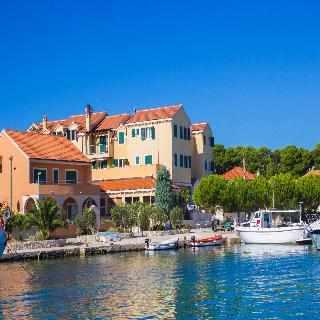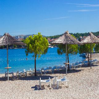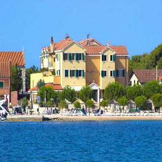 Built on the grounds of an old sponge cooperative, this newly established hotel is situated on the coast of the small, picturesque island of Krapanj and is surrounded by a beautiful pine forest. With its authentic architecture it blends harmoniously into its environment. The hotel is in the centre of the village and is the only one on the island. The islanders are traditionally sponge harvesters and fishermen. The hotel is located about 100 m from the town centre, with its bars and restaurants, 20 minutes from the beach and 7 km from the bus and train stations.||This beach hotel, which was built in 2005, comprises a total of 65 beds: 5 suites, 9 double rooms and 9 triple rooms. The owners, lovers of diving, prefer to call the hotel a diving centre, due to its character and its own collection of state-of-the-art diving equipment. The facilities provided by the hotel include air conditioning, an entrance hall with 24-hour reception, a hotel safe, currency exchange facilities, lift access, a souvenir shop, a café, a TV lounge, a bar and an à la carte restaurant. Guests can also make use of the public Internet access, a WLAN access point and laundry and room services. Guests can also use the sheltered car park, which is kept under surveillance and has 50 spaces.||All rooms and apartments are equipped with air conditioning, are luxuriously furnished and come with an en suite bath/ shower including a hairdryer, a direct dial telephone, a satellite TV, Internet access, a minibar, individual heating, a room safe and either a balcony or a terrace.||The hotel offers guests use of an indoor pool, a solarium, aqua aerobics classes, 2 saunas with infrared or combined heating, massage services, spa treatments, banana boating, water-skiing, jet-skiing, motor boating, surfing and sailing (some charges may apply). On the beach just around 20 m away sun loungers and parasols can be rented.