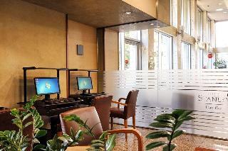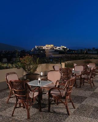 This hotel is close to Athens city centre, Constitution Square and Omonoia Square and the Plaka. A metro station next to the hotel, offers good service to Syntagma Square and the shopping area. Facilities include a 24-hour reception, currency exchange, a lounge and conference facilities, dry cleaning and laundry services and a babysitting service is available on request. There is also a jewelers, a barber shop and hairdressing salon and there is a roof garden with panoramic views of Athens. There a restaurant, a bar and those arriving by car may make use of the private indoor parking.