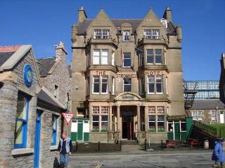 Recently refurbished to a high modern standard, this historic hotel lies in the heart of the unique fishing port of Stromness overlooking the harbour and Scapa Flow. The restaurant prides itself on using the finest local produce of Orkney. Guests can enjoy a quiet drink in the Hannavoe Lounge with its open fire, the Flattie Bar where Orkney Ales are on tap, or in the cosy atmosphere of the Still Room Bar. All 42 bedrooms have en-suite facilities, colour TV, direct dial telephone, and hospitality tray. The hotel also offers limited room service, a lift, conference facilities, and a garden for guests use.