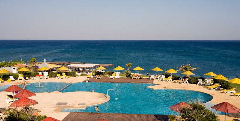 This hotel is situated in peaceful surroundings about 350 m away from the long sandy beach at Kolymbia. There is a bus stop for scheduled buses right in front of the hotel and the distance to both Rhodes Town and Lindos is around 25 km.|The hotel consists of 6 buildings within a well-tended garden complex. Amongst the hotel's facilities are an air-conditioned foyer with a 24-hour reception desk, a seating corner and a lift. There is a restaurant, bars, a TV corner, a small supermarket, a jeweller and a kids' playground in the garden.|The modern and comfortable rooms have an en suite bathroom with hairdryer, a direct dial telephone, a radio, a fridge, satellite TV, and a balcony or a terrace. The rooms are air-conditioned from the 1st of June until the 30th of September.|In the outdoor complex, there is a pool with a children's paddling pool, and a sun deck with sun loungers and parasols. The leisure activities include darts, billiards, table tennis and volleyball. There is also a tennis court (payable locally) and water sports like waterskiing and windsurfing on the beach (charges apply).|Breakfast and dinner are served in the restaurant. Breakfast is served as a buffet, and dinner comprises a salad bar and a starter buffet. The main course can then be chosen from a wide selection. There is a snack bar located beside the swimming pool which is open daily until midnight and offers Greek starters, main courses and international dishes. Refreshments are also served at the 'Terrace Bar'. Guests can also choose the half-board option when booking.