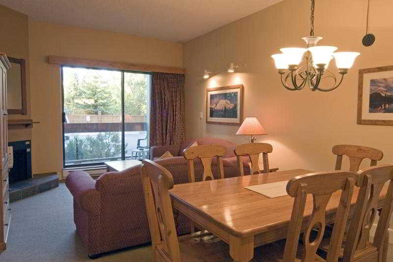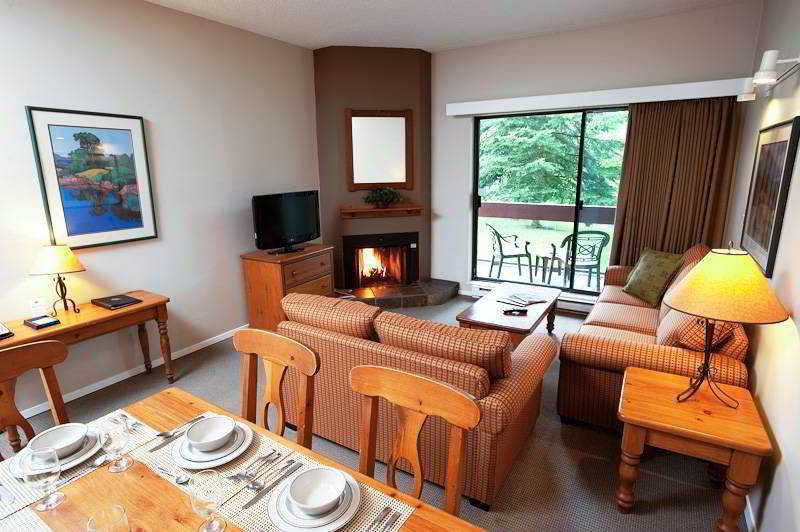 This contemporary, five-storey lodge adjacent to Whistler Golf Club is 3 blocks from the Blackcomb and Whistler ski lifts and 7 blocks from the Whistler Marketplace. Guests will find restaurants, shops, bars, nightlife and links to the public transport within 5 minutes' walk of this family-friendly club resort. The train station is 10 minutes on foot. Pemberton is approximately 33 km from the ski hotel, Squamish is 60 km away, Alta Lake is approximately 10 km, and Vancouver is around two and a half hours' drive.||This pet-friendly hotel offers secure bicycle and ski storage, a 24-hour coin laundry, a lobby with 24-hour reception and check-out service, a computer kiosk with dial-up Internet access (a surcharge applies), and a complimentary ski shuttle in winter. A grocery and beverage delivery service is available, as is secured underground parking (a surcharge applies). In addition to the 64 guest rooms, the hotel also offers a hotel safe, children's playground, and conference facilities.||The hotel offers suites in a five-storey building with lifts and interior corridors. All suites have balconies with forest or mountain views, wood-burning fireplaces, separate sitting and sleeping areas, and fully equipped kitchens with an oven, stove, refrigerator, microwave, and dishwasher. The dining table seats six. An en suite bathroom with a shower, bathtub and hairdryer also features as standard. Other in-room amenities include a direct dial telephone, satellite TV, a radio, Internet access, a safe, tea and coffee making facilities, a washing machine, ironing set and central heating.||The hotel has a heated outdoor swimming pool with sun loungers laid out for use, 2 hot tubs, a sauna and outdoor BBQ grills. Guests can also go biking, or play tennis or beach volleyball at the resort.