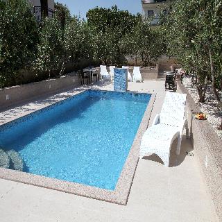 The villa is located in the beautiful old Mediterranean town of Seget Vranjica, just 5 km from the town of Trogir. It is just 70 m from the beach and close to Trogir's Old Town, which is under UNESCO protection. The city of Split is 35 km away, providing visitors with the opportunity to explore the local monuments and impressive nightlife, with a casino, bars and nightclubs. The hotel is approximately 8 km from Split Airport. The villa is decorated in a modern style, with spacious and comfortable apartments. The main building has an outdoor swimming pool, and provides car rental and an airport shuttle service. The annex building has also a big swimming pool . It has a modern design and is situated 30 m from the main building. A large garden surrounds the property, providing a tranquil setting for romantic walks.