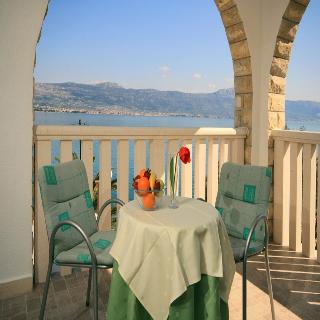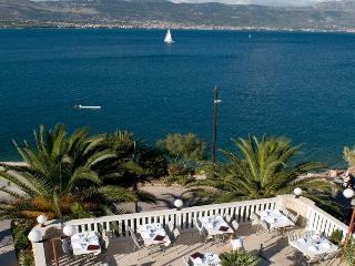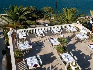 The hotel is located in the idyllic village of Arbanija on the small peninsula of Ciovo. A short 100-metre bridge connects Ciovo with the mainland and Trogir. The hotel is a nice starting point for visiting the wonderful places and islands in central Dalmatia. The beach is about 20 m away and there are many shops about 4 km away. Split Airport is only 3 km from Trogir.||This charming family hotel offers guests a homely atmosphere. The beach hotel has a lobby and facilities include air conditioning, a bar and a restaurant with a beautiful terrace offering stunning sea views and a rich selection of local cuisine. Wireless Internet access and a laundry service are also on offer.||The hotel offers modern, furnished rooms. All rooms are well-equipped with a satellite TV, telephone, air conditioning, Internet access, a safe, minibar, shower and hairdryer to ensure that guests' holidays are pleasant and comfortable. ||Sun loungers with parasols are laid out ready for use on the nearby pebble beach, available with surcharge.||The hotel offers a restaurant with a beautiful terrace offering views over the sea where guests can enjoy a rich selection of national meals and drinks created and served by the attentive personnel. The restaurant offers guests a regular set menu and an à la carte menu.