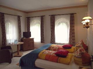 This pleasant country house lies within a 15-minute walk of the centre of Mittenwalde. In the immediate vicinity (around 2 km away) are countless shops and restaurants. The bus station is approximately 1.5 km away and the train station is 4 km from the hotel. The tourist centre may be reached in about 45 minutes by car and the airport is roughly 12 km away.||This hotel comprises 12 rooms, including 1 suite. Guests are invited into the foyer with a cloakroom and safes. Culinary options include a snug café and a restaurant. Furthermore, there is a newspaper stand, an Internet terminal (charges apply) to be used within the hotel as well as a bicycle storage room with a bicycle hire service. Business guests may take advantage of the conference facilities. Younger guests can let off steam in the playground and room and laundry services are on offer to all. Those arriving by car may make use of the hotel's parking spaces or garage.||The stylish rooms all come with an en suite bathroom with a shower and hairdryer. Further fittings include a direct dial telephone, satellite/cable TV, a double bed, central heating and a balcony or terrace. A minibar is also available in the hallway.||The well-kept outdoor complex features sun loungers and parasols. Leisure options include a massage service, table tennis, basketball and volleyball. Riding stables are to be found within 500 m of the hotel, it is 5 km to tennis courts and 9 km to the nearest golf course.||Guests are offered breakfast in the mornings. Lunch and dinner may be taken à la carte; the evening meal may alternatively be chosen from a set menu.