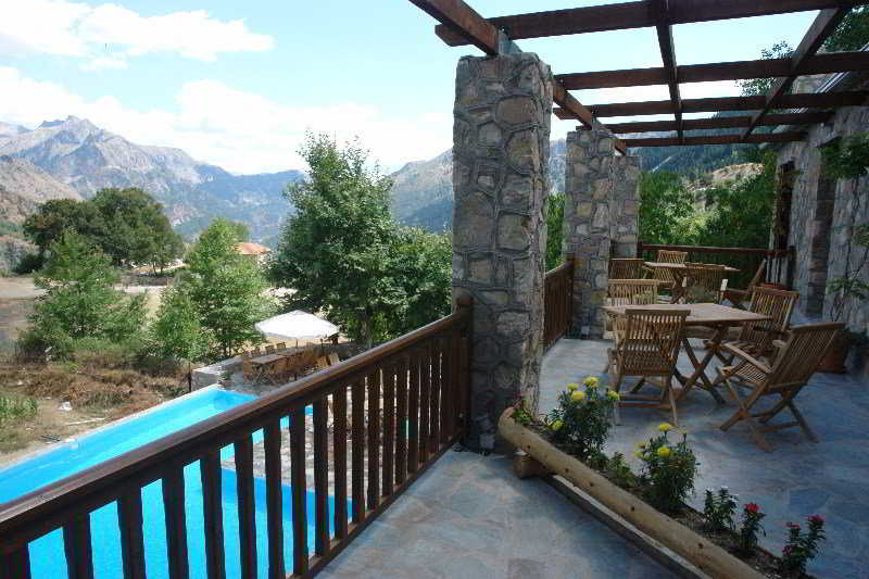 The hotel is situated at an altitude of 1050 metres on the peak of Pindos Mountain in the beautiful village of Neraida. This picturesque village with traditional stone-built houses and paved roads is very close to the crystal cold waters of the Acheloos River (about 5 km away). The centre of Neraida is around 500 m away. The Voulgareli River is some 22 km from the property. The Pertouli ski fields are around 55 km away.||This is a charming guesthouse constructed with stone and natural wood and based on the traditional architecture of the village. It offers a total of 10 rooms. The decoration of the indoor areas is along simple but modern lines, combining luxury with classic traditional features. The hotel includes a lobby with 24-hour reception and check-out services and a café-bar. Other facilities include a hotel safe, a children's playground, a restaurant, wireless Internet access (for a fee), a laundry service and car park.||This guesthouse consists of rooms with quality materials, a fireplace and magnificent view of the rich natural surroundings of the hotel. Each room is individually decorated and includes an en suite bathroom with a shower and hairdryer, a direct dial telephone, mini fridge and balcony. They also provide individually regulated heating, an ironing set, double bed, TV and Internet access (for an extra fee).||Guests may relax with a dip in the outdoor swimming pool. Sun loungers and parasols are laid out ready for use. An indoor hot tub is also available (for a fee).