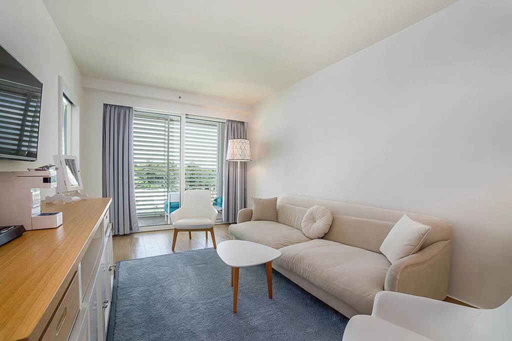 Hótelið státar af björtum og glæsilegum herbergjum með nútímalegum þægindum og útsýni yfir hafið, garðinn eða hótelatrium. Gestir geta slakað á við pálmatrjálínulega sundlaugina, notið sólarinnar á einkasólbekkjum eða skellt sér í lúxusmeðferðir í Jure Spa, sem býður upp á heilsulind, gufubað, nudd og afslöppunarsvæði.