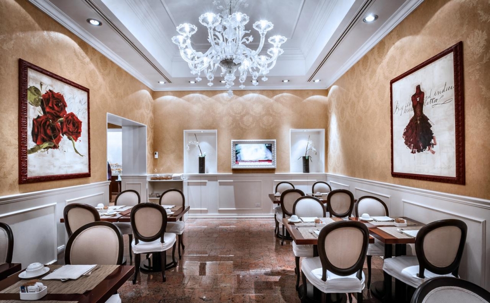Dæmigerðir ítalskir réttir eru á boðstólnum í morgunmatnum og einnig er boðið upp á rétti fyrir þá sem eru með sérstakar óskir varðandi mataræðið. Við komu er boðið upp á ókeypis ávexti og kex á litlu svæði og klukkan 16:00 er borið fram síðdegiste.