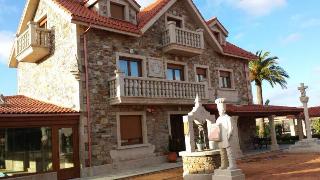 The guesthouse is situated in Aldeola village, about 5 km from Malpica town centre, a beautiful fishing town on Costa da Morte. A Coruña Airport is about 48 km away, Santiago de Compostela Airport is about 60 km away and Vigo Airport is around 160 km away.||Guests are welcomed in the lobby of this modern guesthouse complex which has 6 rooms. It offers a small TV lounge to greet guests, a bar, a breakfast room, restaurants with various rooms for banquets and celebrations, large gardens, conference facilities and a car park. Younger guests can let off steam in the children's playground.||All rooms are en suite and feature a bath and hairdryer, as well as a direct dial telephone, a TV, a minibar and heating.||The guesthouse hotel has a heated indoor swimming pool and a sauna. There is a golf course nearby.||The hotel serves breakfast. Lunch and dinner can be enjoyed as a set menu.