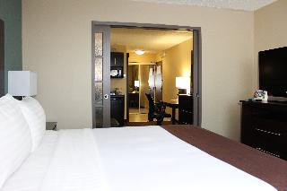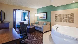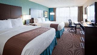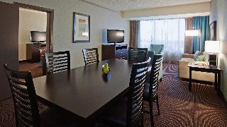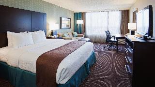 This family-friendly hotel is a landmark in the Westland area, surrounded by major pharmaceutical and hi-tech companies. St-Jean Boulevard offers guests numerous options for restaurants, films, nightlife and shops. It is conveniently located across the street from Fairview shopping mall and is just a 20-minute drive from Montreal. It lies close to Dorval railway station and Montreal-Trudeau International Airport: this hotel is the place to meet.||This Montreal airport hotel offers warm hospitality, exceptional services and 308 rooms. Fully air-conditioned, it is suited to please business and leisure travellers alike. It features a lobby with 24-hour reception and check-out service, hotel safe and currency exchange facilities. There is a bar, a restaurant and a games room on site and Internet access is available. The hotel has home conference facilities and is specialised in hosting corporate meetings and weddings. Guests can choose from a full menu for room service and a laundry service is also provided.||The standard rooms are 31 m² in size and have been designed with business travellers in mind. Guests will appreciate the large work area and the complimentary newspaper delivered to the room. The large windows provide natural light and the bathroom features heated floors.||The hotel features indoor and outdoor swimming pools, whilst a sauna and massage treatments are also available. Guests can play squash or pool/snooker, or work out in the gym. Guests looking to play a round of golf can head to 10 Golf, just a 10-minute drive from the hotel.||This hotel serves a buffet and continental breakfast. Midday and evening meals are available from a menu and à la carte dishes are provided at lunchtime.||From Montreal Airport: Take Hwy 20 west and exit at St-Jean North. Turn left at the 6th set of lights. From Toronto or Ottawa: Take Hwy 40 east and exit at St-Jean. The hotel is on the right-hand side.