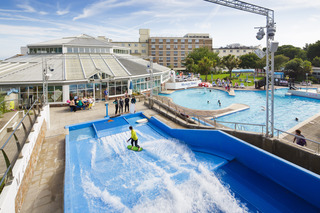 The Merton Hotel is one of the largest hotels in Jersey and popular with leisure and corporate guests alike. There are many different facilities, the hotel and its grounds are very spacious and it is located in a quiet area just 5-10 minutes' walk from the heart of the city. The Aquadome has a gym, an indoor subtropical pool with an 80m water slide, spa pools, sauna and steam room as well as an outdoor pool and garden area for those long hot summers! The Flowrider surf machine offers wannabe surfers and boarders the chance to practice their skills under the eye of qualified instructors. All 283 bedrooms are modern and comfortable with ensuite bathrooms. Family rooms for up to four people are also available. The hotel offers a choice of restaurants and bars. The hotel usually opens from before Easter to mid December. Highly recommended for families of all ages and groups. Complimentary car parking for hotel guests.||Please be advised that due to an extended period for annual maintenance and refurbishment, |The Merton Hotel's Aquadome Leisure Club will be closed from 1 January – 23 March 2018| |So this facility will not be available to any Pomme d'Or or Greenhills guests during this time.||