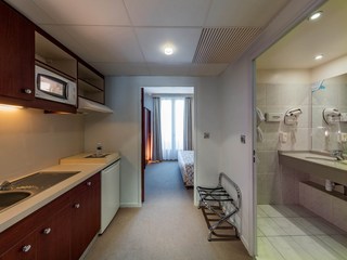 Located in the small settlement of Néris-les-Bains, right opposite a casino, this family-friendly hotel is just a stone's throw away from the thermal baths. The picturesque town of Montluçon is just 10 minutes by car from the hotel, and Vulcania, the ‘European Park of Volcanism' is an hour away by car. The pleasant and calming setting is perfectly suited for guests wanting to relax.||Néris-les-Bains owes its prosperity to the Belle Époque, and the architecture of the hotel reflects the pleasant atmosphere of spa towns. The air-conditioned hotel, built in 1930, has a total of 59 rooms and has a lobby with a 24-hour reception and check-out service, currency exchange facilities, lift access, a restaurant and bar, a safe, Internet access and room service.||The Art Deco style rooms are spacious and peaceful, and some look out on the casino. All of the en suite rooms are fitted with a double bed, bath tub, hairdryer, satellite TV, radio, safe, direct dial telephone, Internet access, iron and ironing board, individually regulated air conditioning and heating and a balcony or terrace.||There is a golf course just 4 km from the hotel.||A buffet breakfast is included in the restaurant, which also offers an à la carte lunch and dinner menu.||From Clermont-Ferrand: From the A 71 motorway, take exit No. 11 for Montmarault. From Paris: From the A 71 motorway, take exit No. 10 for Montluçon.