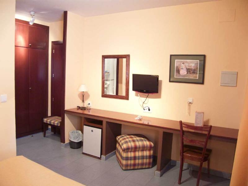 The motel is located in the northern part of the city of Granada, in the neighbourhood known as Beiro. Granada's main bus station is just 100 m away and public transport city buses pass close to the motel every 10 minutes. |This city motel offers 33 rooms and combines a fun place to stay with practical accommodation. Guests are welcomed at the 24-hour reception, which offers a 24-hour check-out service and a TV lounge. Additional amenities include a children's playground and guests can enjoy a drink at the café and bar, and dine in the restaurant. Wireless Internet access is available and for a fee guests can also take advantage of the room service during restaurant hours and a laundry service. There is a car park for those arriving by car. Bicycle hire is also available for a fee.||All rooms are en suite and feature a shower, bath and hairdryer, as well as a double bed, satellite/cable TV, Internet access and individually regulated air conditioning.||The residence could also be described as a small resort, given that it has an outdoor swimming pool with a poolside snack bar, gardens and green areas, as well as a sun terrace with sun loungers and parasols. Additional amenities include table tennis and, for a fee, 3 paddle tennis courts.||The motel's restaurant offers a continental breakfast each morning, and lunch and dinner are served à la carte. Dinner is also offered from a set menu and snacks and sandwiches are available from the bar.