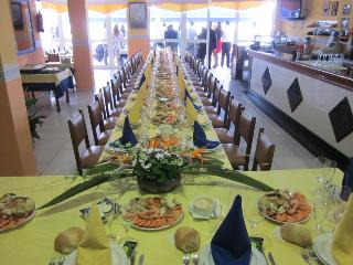 This hotel is located in the nice town of Santa Margarita, really clore to the center of the village. Walking from the hotel you can reach easily the beach, 300m from the hotel. Nearby you can also find numerous stores, bars, discotheques and restaurants. In front of the hotel the customer can find a bus stop.||It is a modern hotel that represents several services that allows them to offer a great variety of options to choose but always with the stisfaction of the customer as their goal. This hotel is basically focussed to familiar vacations.||The rooms have TV, telephone, completely equiped bathroom and central heating. The rooms are decorated to make the customer feel the most confortable that is possible. They also have two rooms with hidromassage tubs.