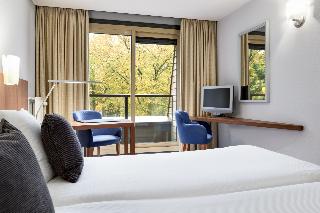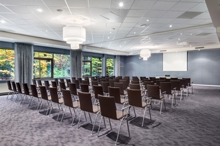 This modern Nunspeet business design hotel is located near various attractions and natural sights such as Lake Veluwe, an ideal destination for a short break in the Netherlands. Guests can enjoy easy access to the city centre, restaurants, pubs, shops, the tourist centre, public transport, the train station and the park. The beach is around 3 km away. Guests may want to visit the Dolfinarium, which is roughly 7 km from the hotel or the Park de Hoge Veluwe and Het Loo royal residence, both located roughly 30 km from the hotel.||This is a hotel of modern design, with modern facilities, a design interior, modern art, excellent food, a well-equipped theatre and a contemporary atmosphere for effective working and relaxation. The hotel comprises 117 rooms in a 4-storey main building and a 2-storey annexe, a garden and a terrace. The air-conditioned hotel features a lobby with 24-hour reception and check-out service, hotel safe, lift access, newspaper stand, café, bar and restaurant. Conference facilities are available for business guests. Amenities for a fee include WLAN Internet access, room and laundry services and bicycle hire.||The comfortable rooms have a balcony and are equipped with satellite/cable TV, radio and direct dial telephone. The private bathroom is fitted with a shower/bathtub and hairdryer. The rooms also feature a double bed, Internet access, air conditioning, central heating and a safe.||The hotel features an indoor swimming pool, a sun terrace, a gym and a sauna. Adventurous guests may go biking.||A continental breakfast buffet is served each morning and guests may choose to dine from the lunch buffet or enjoy their lunch à la carte. For dinner, à la carte and set menu options are available.