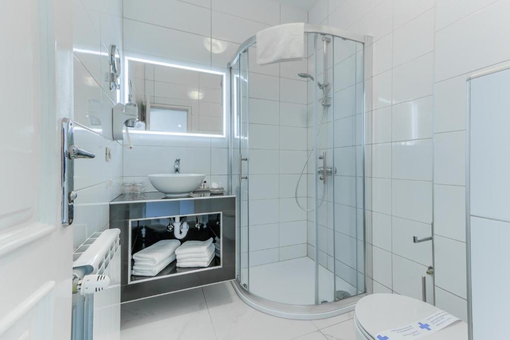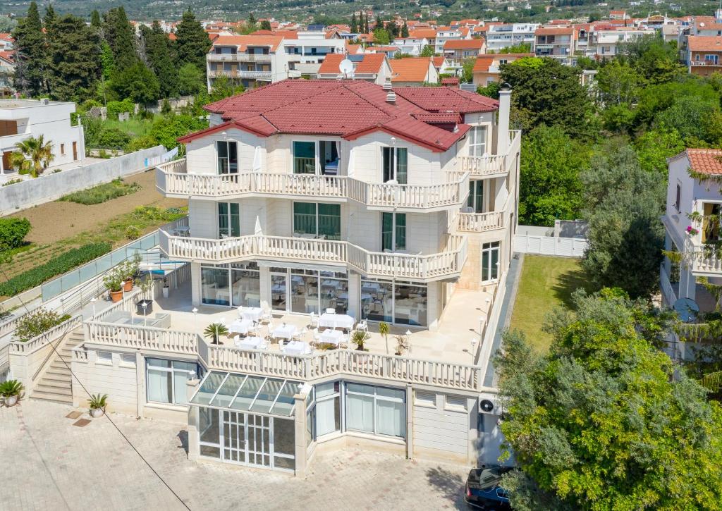 Hótelið er staðsett beint við strandlengjuna og býður upp á útisundlaug, veitingastað með hlaðborðsmorgunverði og kvöldverði, auk þakveröndar með útsýni yfir Kastela-flóann. Það er tilvalið fyrir afslappandi frí, með stuttum göngutúr í ströndina og nálægð við helstu kennileiti svæðisins. Aðstaðan inniheldur einnig ráðstefnusal, viðskiptaaðstöðu, bar og ókeypis einkabílastæði. Hótelið er í aðeins um 6 km fjarlægð frá Split-flugvelli og í 15 mínútna akstursfjarlægð frá miðbæ Split.